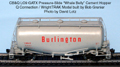1. Most important is that the general proportions of the model are to scale. While this might seem implicit, some models are significantly over- or under-sized. Because incorrect details can be reworked or replaced fairly easily but correcting a model's proportions is usually impossible, a model's fidelity to scale is essential. Therefore, the attached listing generally does not include 'stand in' models regardless of their availability painted for Burlington prototypes (e.g. Walther's 4427 cubic foot PS-2CD covered hopper representing the Q's 4000 cubic foot versions).