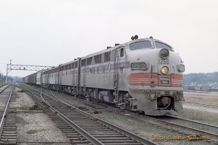 CB&Q #126D F3A pulling freight out of Savannah, IL, in mid-late 1960s. (Jan Kohl/Castle Graphics) |