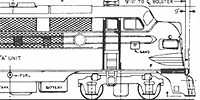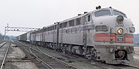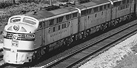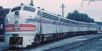 A third batch of Phase II F3's, also A/B/A sets, was purchased at the same time, but these were intended for passenger service on the new California Zephyr. Numbered 9960-9962, they were delivered in the passenger paint scheme of silver (aluminum paint) with black striping and lettering. They were the only F-units on the system with steam generators (in both the A- and B-units) and were the only ones lacking dynamic brakes. After they were bumped from the Zephyr in the early Fifties, they were regeared for freight service in 1955 and eventually repainted in the freight scheme. They kept their passenger numbers to the end, however. |